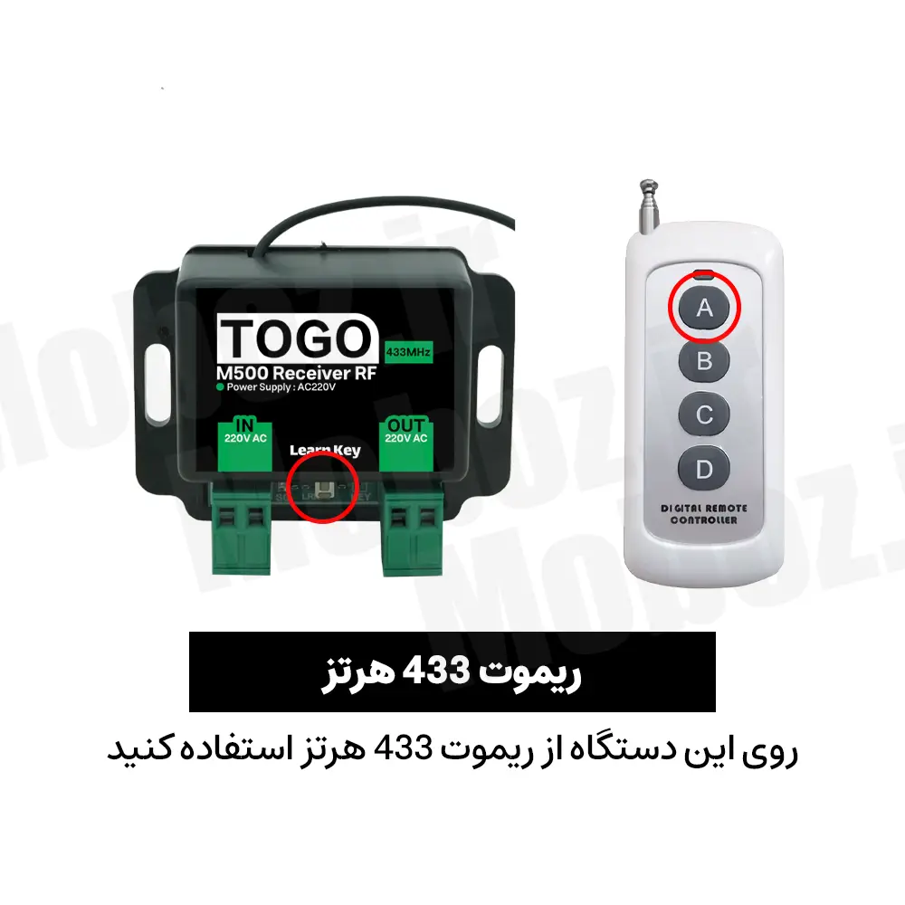 این دستگاه ریموت کنترل به صورت همراه ندارد و جداگانه ریموت 433 هرتز را از سایت موبوزد تهیه کنید .